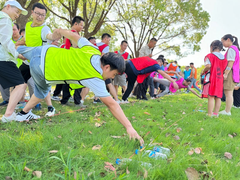 抵達(dá)太湖十八灣拓展露營基地后,我們仿佛置身于一幅美麗的畫卷之中。在教練的引導(dǎo)下,團(tuán)隊(duì)成員迅速投入到熱身和放松運(yùn)動中,歡聲笑語回蕩在青山綠水間。緊接著,一場場精心設(shè)計(jì)的分組競賽拓展游戲拉開了序幕?!叭糊埲∷笨简?yàn)著團(tuán)隊(duì)的智慧與策略,“趣味毛毛蟲”激發(fā)了大家的歡笑與斗志,“同心擊鼓”更是將團(tuán)隊(duì)協(xié)作的精神發(fā)揮到了極致。每當(dāng)有精彩瞬間出現(xiàn),現(xiàn)場都會爆發(fā)出雷鳴般的掌聲和歡呼聲。